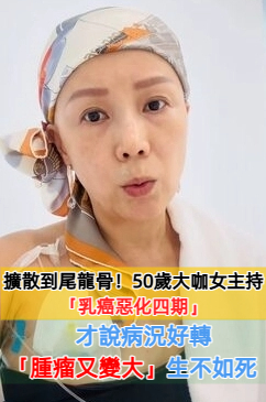擴散到尾龍骨!50歲大咖女主持「乳癌惡化四期」 才說病況好轉「腫瘤又變大」生不如死