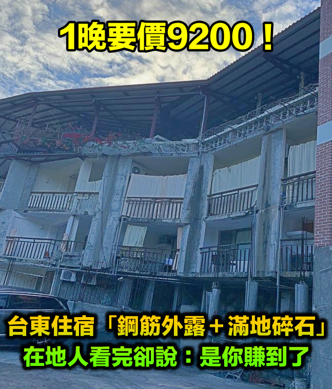 1晚要9200!台東住宿「鋼筋水泥都外露」地板全是碎石 自嘲「睡到最貴工地」在地人曝:妳賺到了