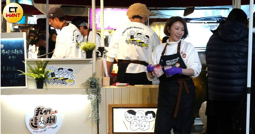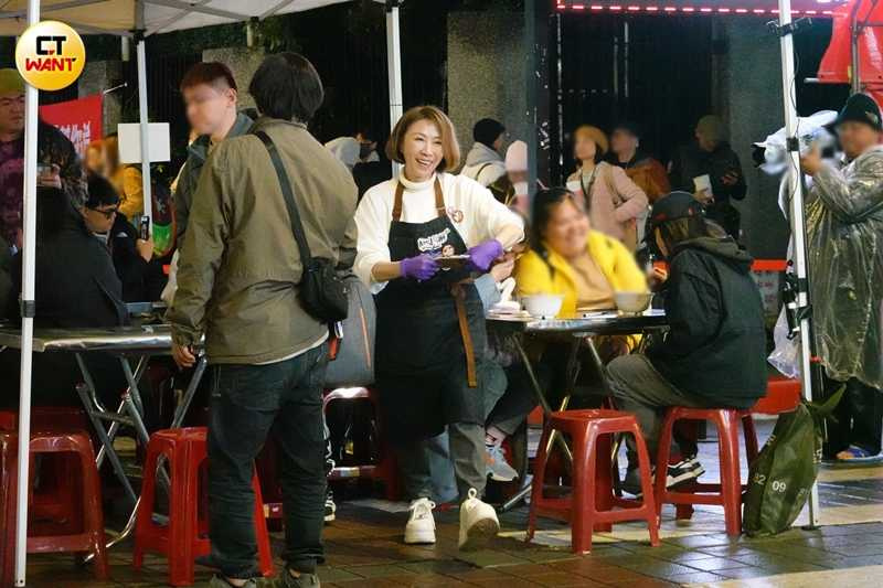只見李翊君穿上圍裙、戴上手套,熱情地招呼客人、也和粉絲互動,展現親切的一面。現場氣氛十分熱絡,身穿可愛毛帽的禾浩辰、送餐時不忘和客人互動拍照,蔡凡熙雖然要專心顧攤、無法離開崗位,卻依然吸引不少人駐足拍照。蔡昌憲更是化身臨時經紀人,不時為禾浩辰向現場粉絲吆喝造勢。