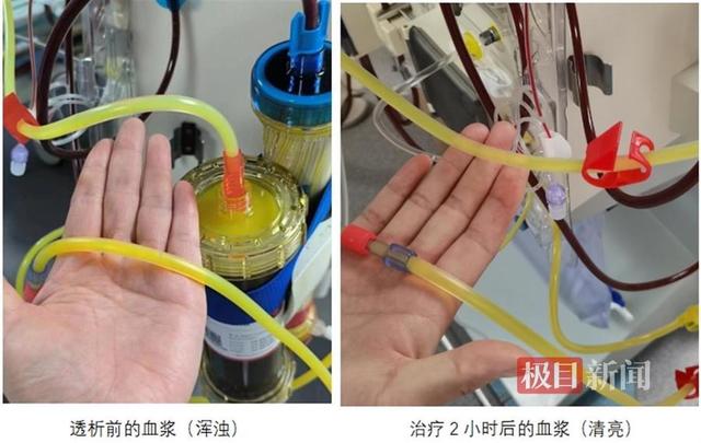 彭先生(化姓)今年58歲,體重56公斤,最近一個月他感覺食慾差、噁心、頭昏腦脹、雙手麻木、全身乏力,就連路都走不穩了。到當地醫院做檢查時,醫生發現抽出的血液表層是一層厚厚的油脂,甘油三酯高達66.75mmol/L,約為正常血脂的40倍,轉氨酶非常高,肝功能也很不好。醫生表示,如此高的血脂很容易出現急性胰腺炎、腦梗死、心肌梗死等急危重症,非常危險,需要馬上治療,最好是進行血脂凈化。