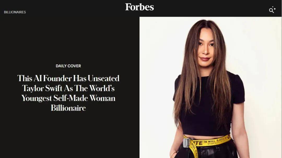 據《富比世》報道,年僅30歲的人工智慧初創公司Scale AI聯合創始人郭露西(Lucy Guo)將超越美國歌手泰勒·斯威夫特(霉霉)成為全球最年輕的白手起家女性億萬富豪。