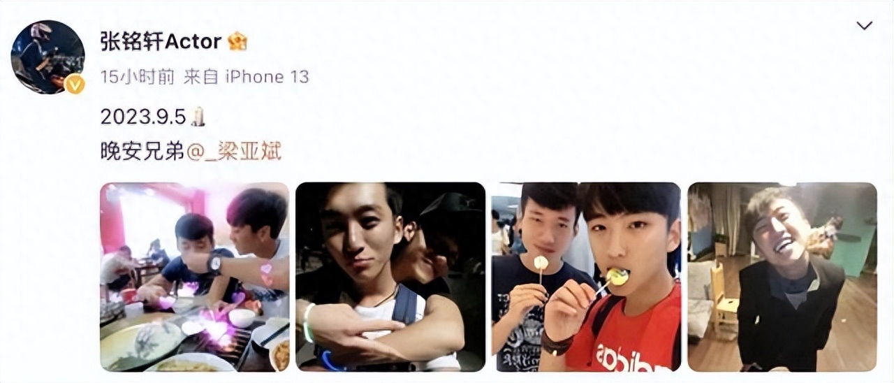 好友男星張銘軒也在微博上傳一張與他的合照哀悼,「晚安兄弟梁亞斌。」不少人都感嘆:「這麼年輕,發生了什麼?」、「真難過,上次直播我還誇這個小哥帥」。