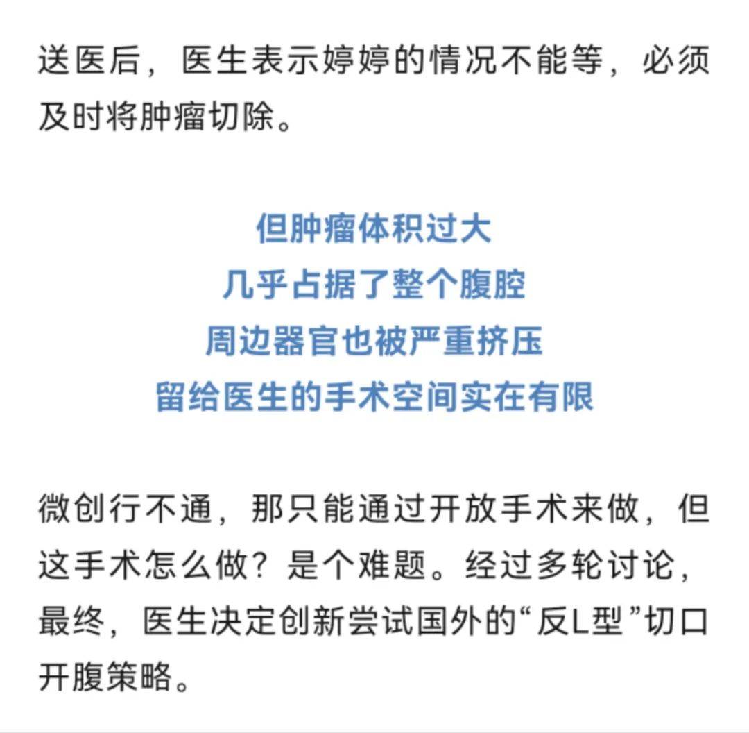 據深圳市第三人民醫院腎移植二科主任說明:腫瘤已經到了肚臍的下緣,就是後腹直肌外側,這種情況需安全地把腫瘤切除,不要把腫瘤搞破,是我們首先要考慮的問題。
