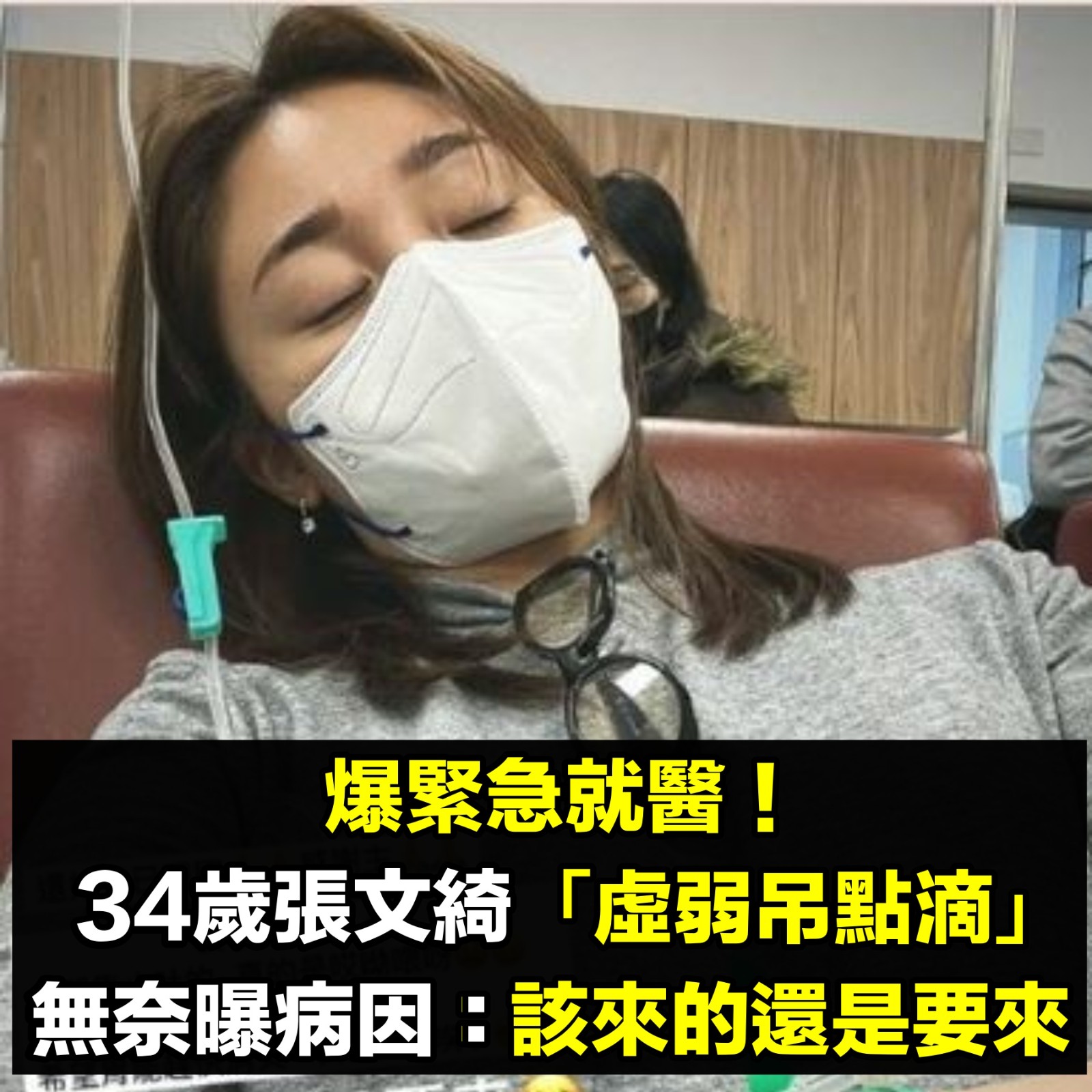 張文綺爆緊急就醫「虛弱吊點滴畫面流出」 「病因曝光」網湧入打氣:早日康復