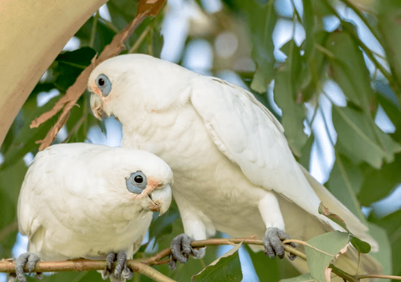 以前,白鸚鵡都是以桉樹或合歡樹的種子為食的,但是現在牠們習慣了吃梧桐樹或楓香樹的球果。