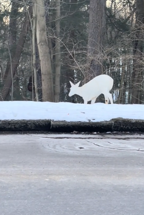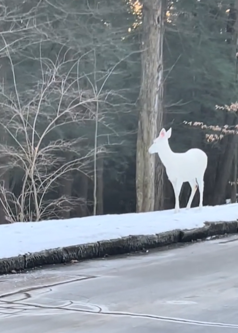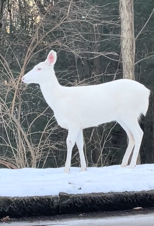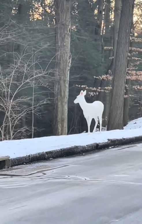 根據《ETtoday寵物雲》報導,這段由網友@carolynnrs分享在TikTok的影片中,可見一隻全身潔白、彷彿散發著神聖光芒的白鹿佇立在路邊,她看見這稀有景象後,立即減緩車速,用手機捕捉下這珍貴的畫面,這隻白鹿不僅全身純白無瑕,其獨特的粉紅色眼睛更為牠增添了一份超凡脫俗的氣質。
