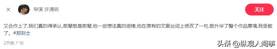 就在9月4號,導演許清明發文稱,終於又和鄭則仕合作上了。
