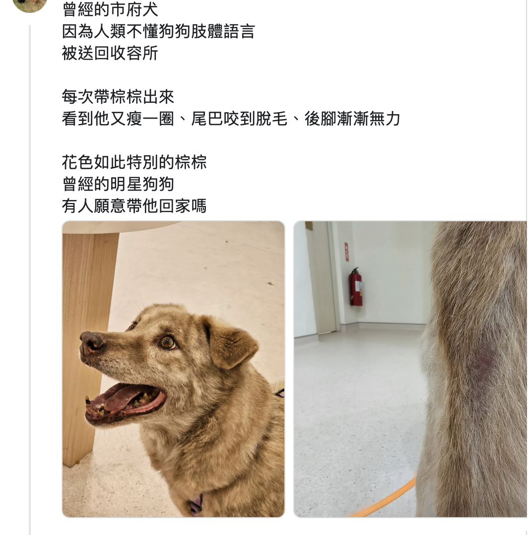 然而棕棕擔任市犬期間,卻多次傳出被鍊住圈養的消息,也曾有獨自逃脫的紀錄。熱心民眾透露,只能利用假日帶著棕棕散步,部分愛狗的市府員工也會順道陪牠運動,但一旦脫逃就無法妥善照顧。