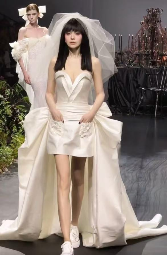 王琳之後也以一席白色短裙婚紗走秀,驚艷了不少現場觀眾。