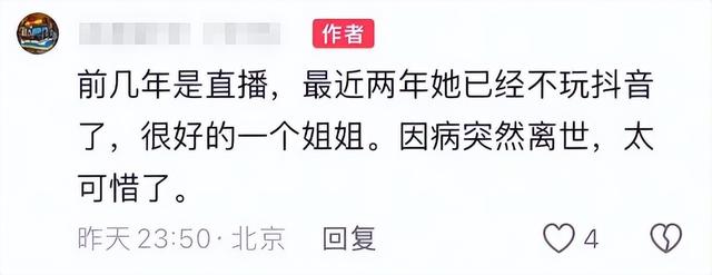 據了解,嬌姐本名劉黛嬌,是北京42路公車駕駛員,她前幾年在影片帳號上直播過,這2年不玩了,一些網友都認識她,坐過42路公車的當地人,更是對嬌姐十分熟悉,聽到她去世的噩耗,都大吃一驚,真就太可惜了。
