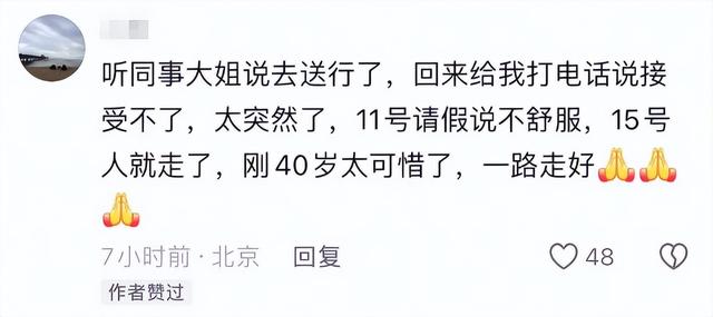 另一位認識嬌姐的人還告知,她輸液的時候兩人還聊了天,嬌姐還發朋友圈和親友互動,真不敢相信幾天前還好好的一個人,說走就走了,嬌姐從不舒服到去世僅僅5天時間。