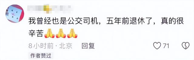 還有退休的公交司機說,他五年前退休了,真的很辛苦,男人都覺得開公車辛苦,何況是女人,這個工作確實不易,當然也是偉大的職業,我們應該致敬每一位公交司機,他們也應該擁有更好的待遇。