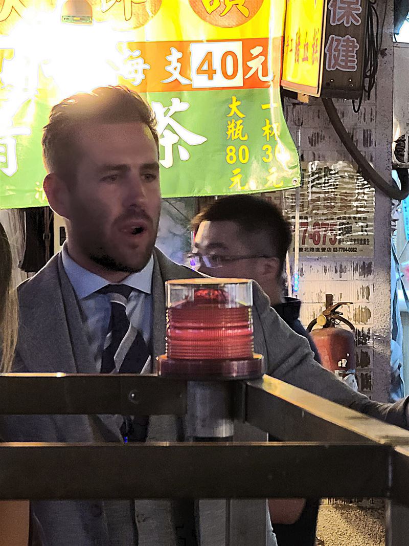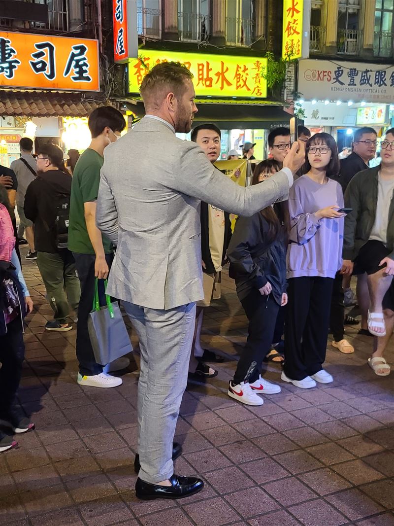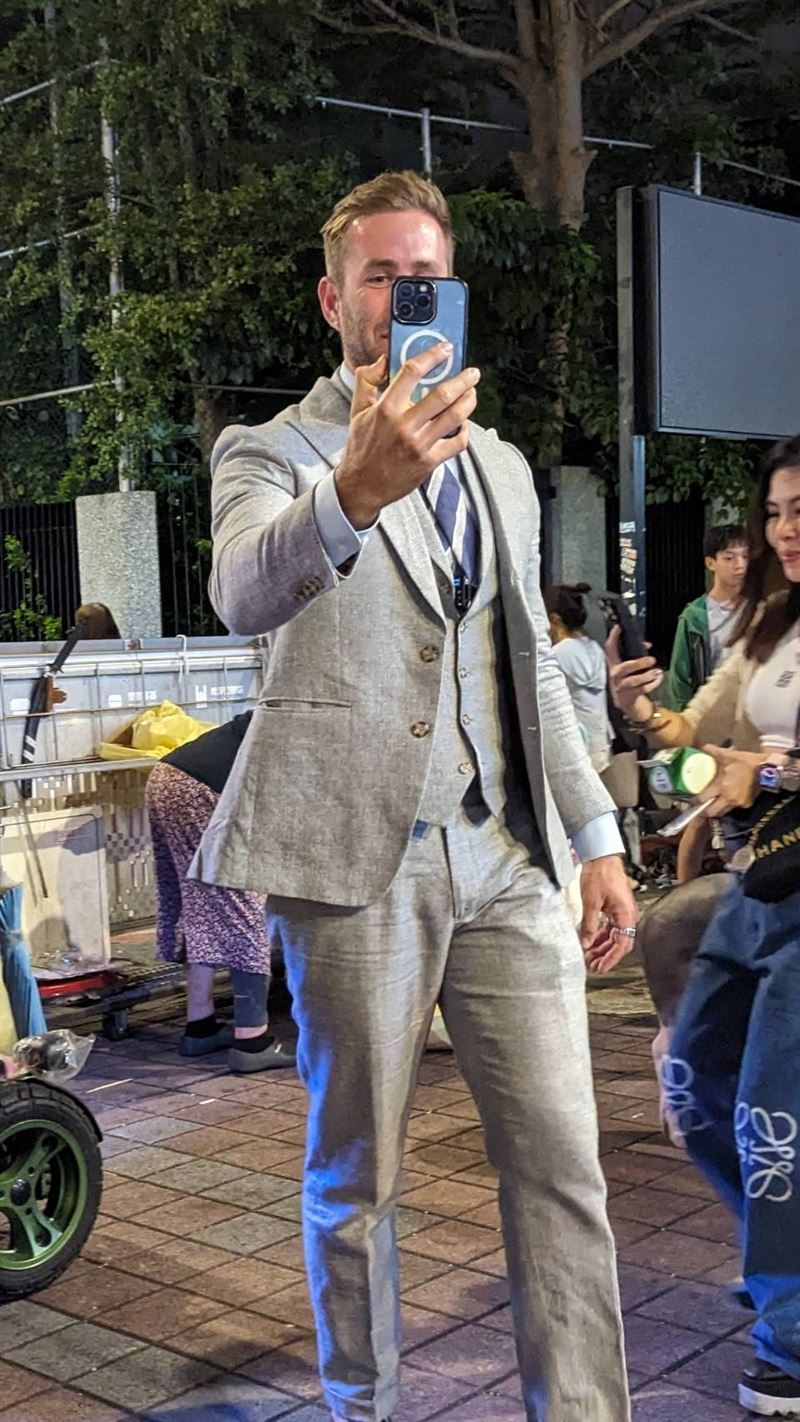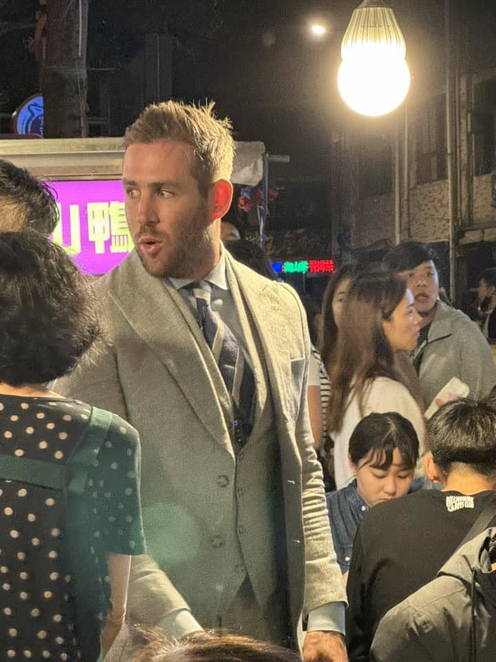 近期就有網友在寧夏夜市發現一位穿著西裝的外國帥哥,對方身材高挑、五官立體帥氣,看起來非常像好萊塢巨星雷恩雷諾斯(Ryan Reynolds),於是他立刻拍下照片詢問網友:「只是想確定他是不是《死侍》」
