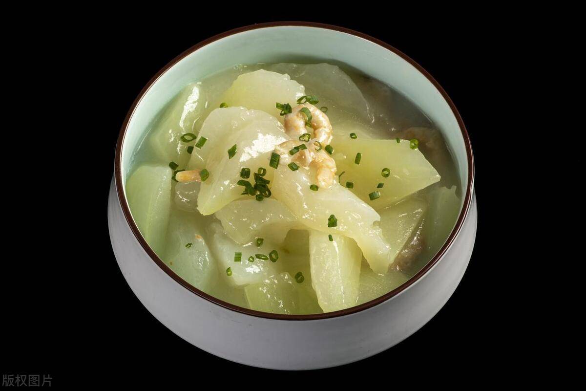 第四步,冬瓜變軟後,倒入沒過食材的清水,放入蝦米,開大火將其燒開,煮五分鐘。