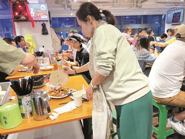 陳美玲貴為老闆娘,身兼多職且非常繁忙,不但要站在餐廳門口,招呼客人入座,還要幫忙清潔用餐完畢的餐桌、親手處理客人走後杯盤狼藉的局面,但她的動作十分俐落,既勤快又親民,而高峰期過去之後,艾威一看人流開始減少,也立刻請老婆一起坐下用餐兼休息,還貼心為妻子倒水。