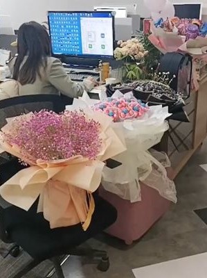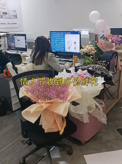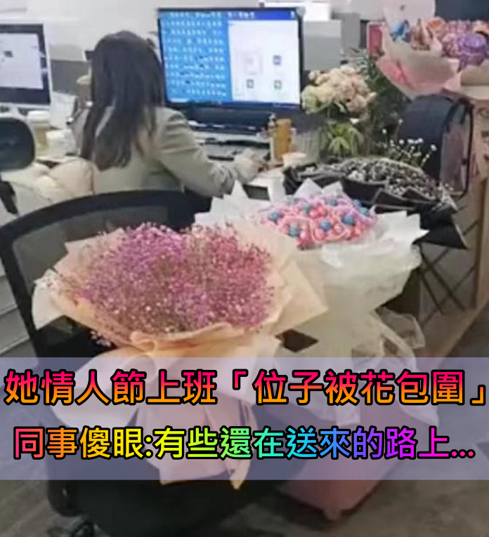 花束收到手軟!OL情人節上班「坐位被禮物山包圍」 同事傻眼「有些還在送來的路上」本尊說話了