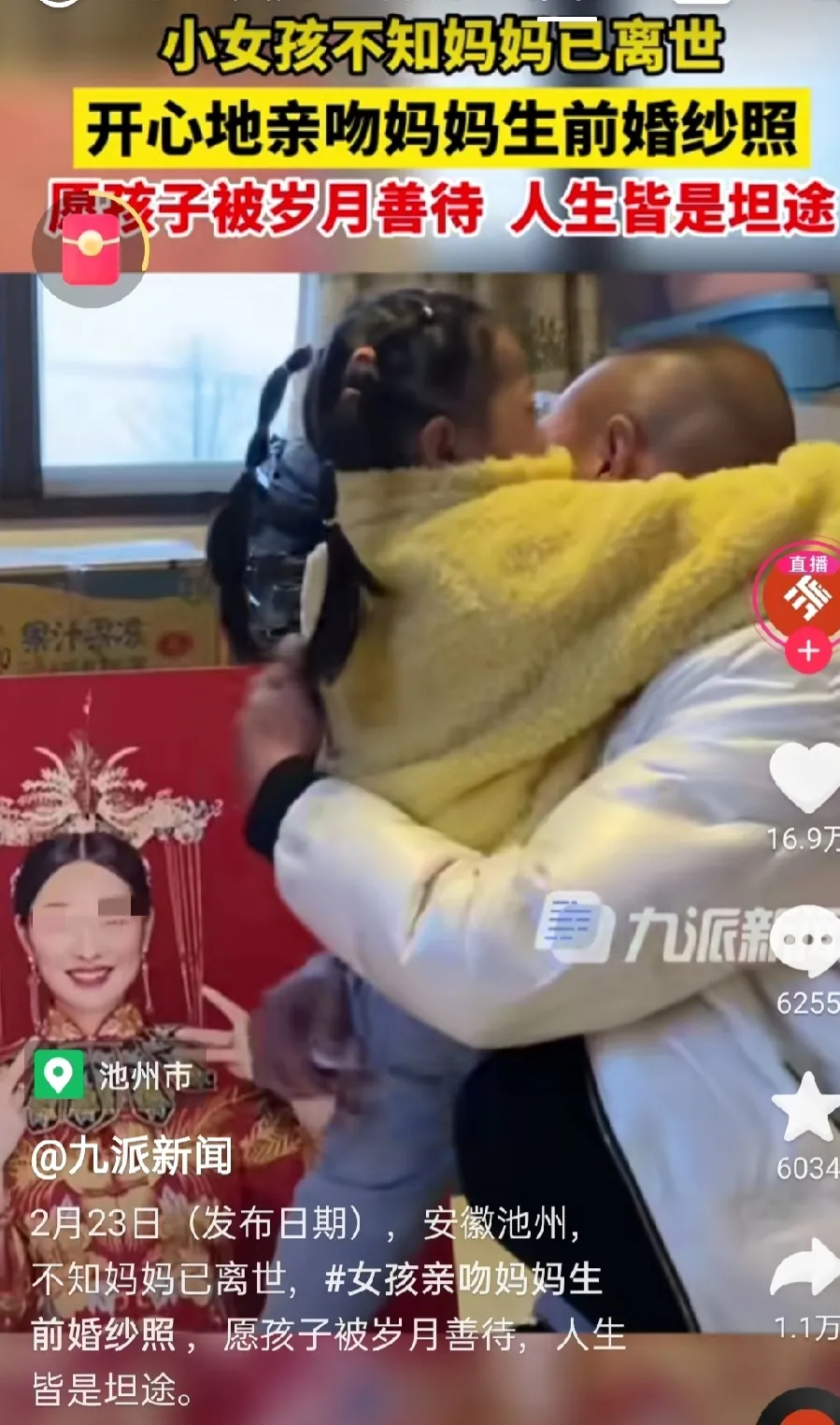 相較於女兒天真的笑容,一旁的爸爸內心卻是五味雜陳,他不知道未來該如何是好,也不知道該如何告訴女兒媽媽已不在的事實。影片曝光後,大批網友湧入替這對父女打氣,「眼含熱淚看孩子高興的樣子,悲涼!願孩子無憂無慮快樂成長!」「好心疼孩子~滿是心酸,滿眼淚,可憐的娃」、「媽媽的愛在天堂,爸爸的愛在身邊」、「媽媽會在你看不見的地方守護著你」。