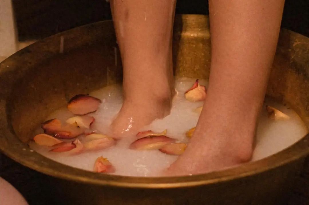 冬至時節泡腳宜在晚上睡前9-11點,可以選擇艾葉、紅花、當歸等溫散活血的中藥,用溫度在38-43℃之間的溫水浸泡足部大約15-30分鐘即可。