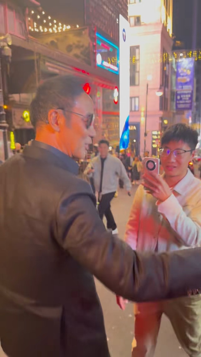 深夜在熱鬧街頭巧遇天王大咖會是什麼場景?近日有民眾在逛街的時候,突然發現前面有個人很眼熟,結果仔細一看,竟然是超級巨星,現場不少人紛紛尖叫,對方也親民地跟大家拍照握手,尤其凍齡外型讓大家驚呼不已。