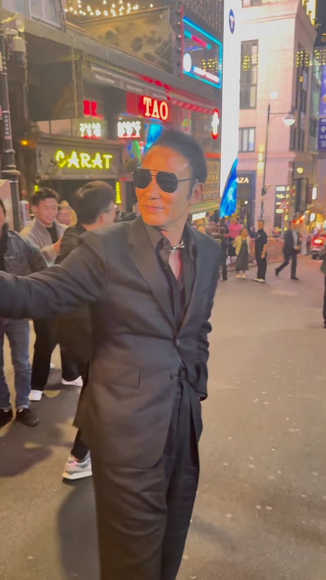 根據《香港01》報導,當晚任達華選擇了一套剪裁極為合身的西裝造型,完美展現他長年健身的成果。他刻意解開領口兩顆鈕扣,流露出不羈中帶點霸氣的風格。即便戴著墨鏡,民眾仍一眼就認出這位大明星。