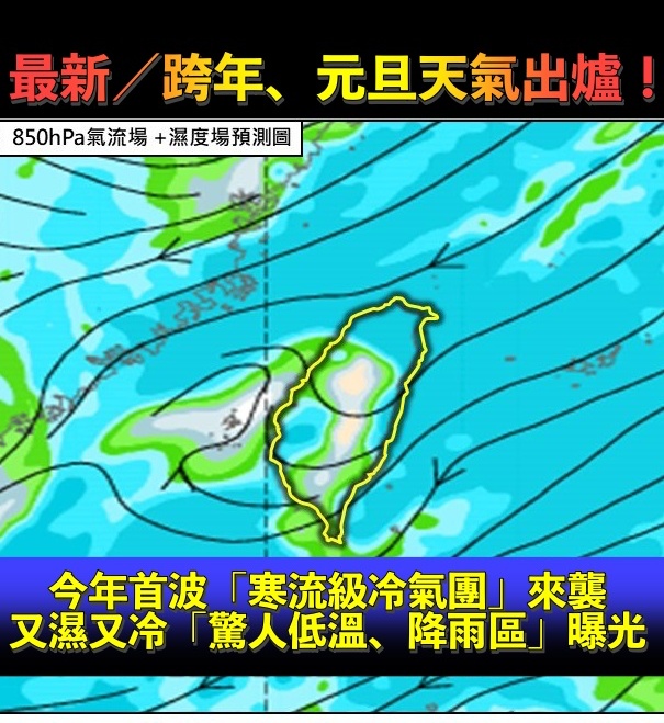 最新/跨年、元旦天氣出爐!元旦起「寒流級低溫急凍」 夾帶雨勢「全台降雨區」曝光