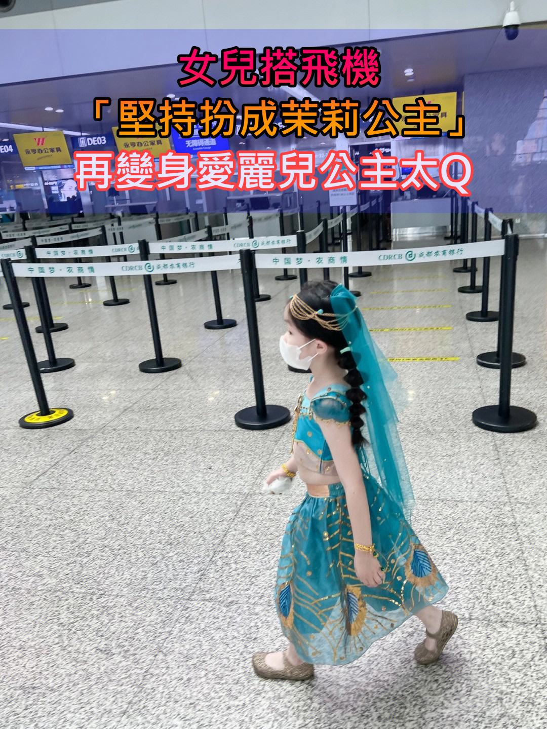 肚肚肉超可愛❤️女兒搭飛機「堅持扮成迷你茉莉公主」 再換魚尾裙「化身愛麗兒公主」漫步沙灘美翻