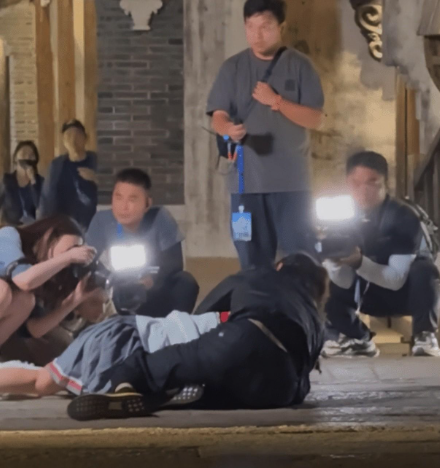 身穿米色套裝的女孩更是拿著單反對著那英的臉拍!