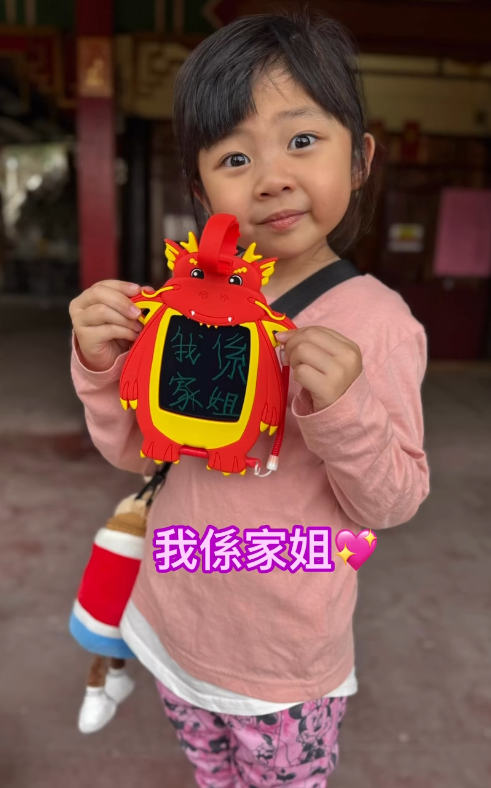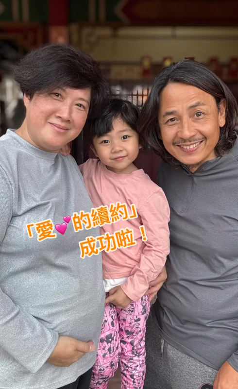 只見一家三口幸福合照,女兒小手放在陳麗麗的孕肚上,發佈號外喜訊:「妃媽『愛的續約』成功,妃妃終於夢想成真做家姐啦!」全家圍繞在準媽媽腹部的溫馨畫面,女兒單人照更是驕傲宣告:「我要當姊姊了!」展現對即將到來的妹妹滿滿期待!