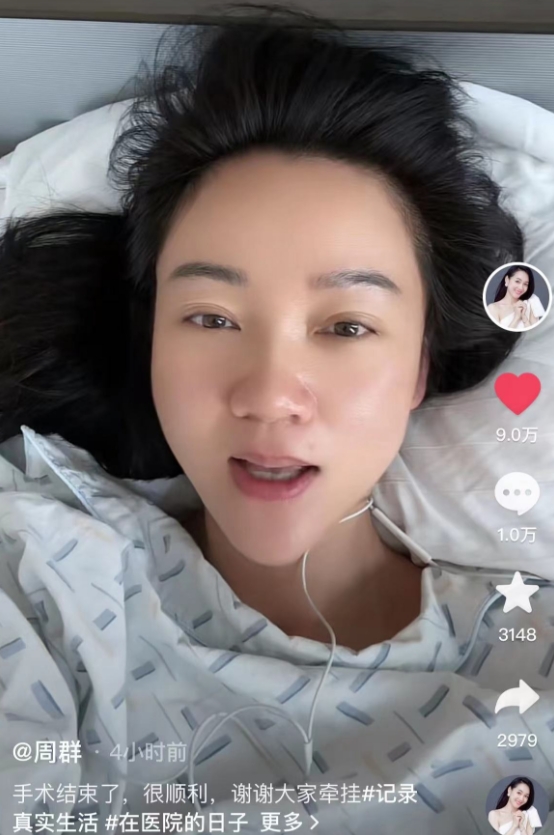 後來在詳細檢查後,發現周群的心臟「卵圓孔未閉合」,她得知檢查結果,也自嘲自己「缺心眼兒」,並緊急安排入院手術,經過幾個小時的手術,也終於被推出手術室,雖然看上去有點虛弱,手上也還插著管子,但也發文報平安:「手術結束了,很順利,謝謝大家牽掛!」她透露,吃喝拉撒都在病床上,讓粉絲好心疼。