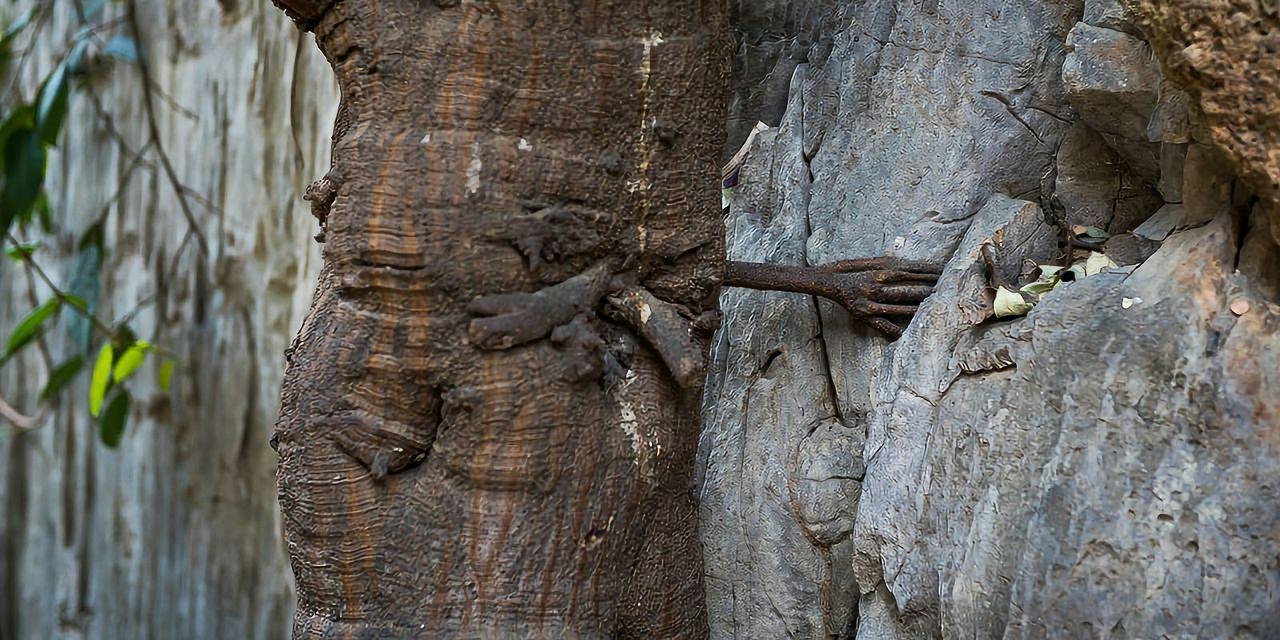神明顯靈!千年菩提樹「一夜長出佛手」信徒搶著朝聖 5根手指「緊抓山壁」頻頻現神蹟