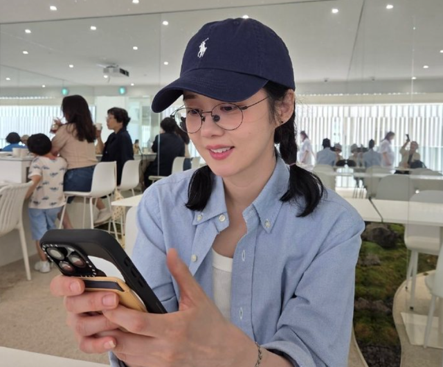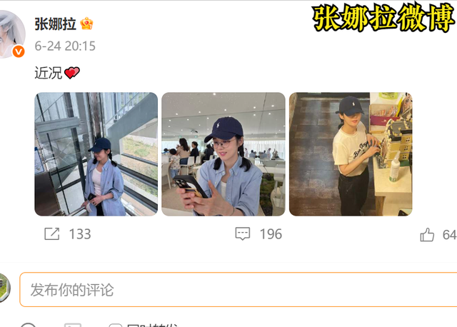 今年的6月份,張娜拉在社群帳號上曬出了自己的近照,照片中的她穿著一件藍色的襯衫和白色的打底,戴著一頂藍色的鴨舌帽,前兩張照片還戴著一副眼鏡,綁起了小辮子,一點也看不出她今年已經44歲了。