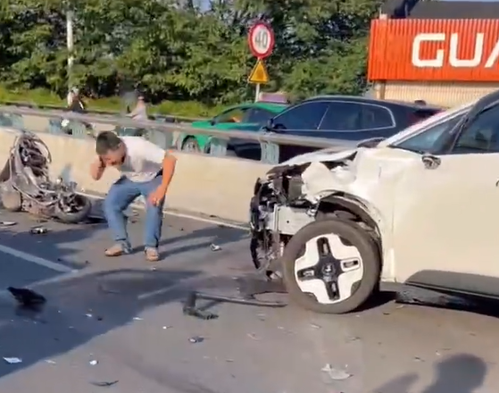 據《ETtoday》報導,這起可怕的事件發生在中國的湖南株洲蘆淞大橋,一位43歲的劉姓男子,駕駛著白色的休旅車,原本開得好好的,但是下一秒他突然遭到後方的車輛撞上,他的車子一時失控,接著就往前追撞,連續撞擊多輛汽車、機車,而各自在車上的駕駛們,遭撞後狀況也都非常悽慘,現場都是破碎的車體殘骸,加上染紅一片的道路表面,讓所有人看了都嚇壞了。