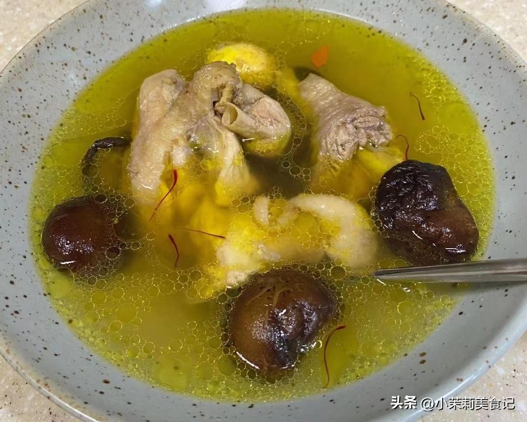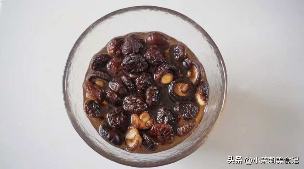1、在燉雞湯的時候,可以搭配一把干香菇,其滋味會更加鮮美。所以我們先將干香菇泡軟並洗凈。