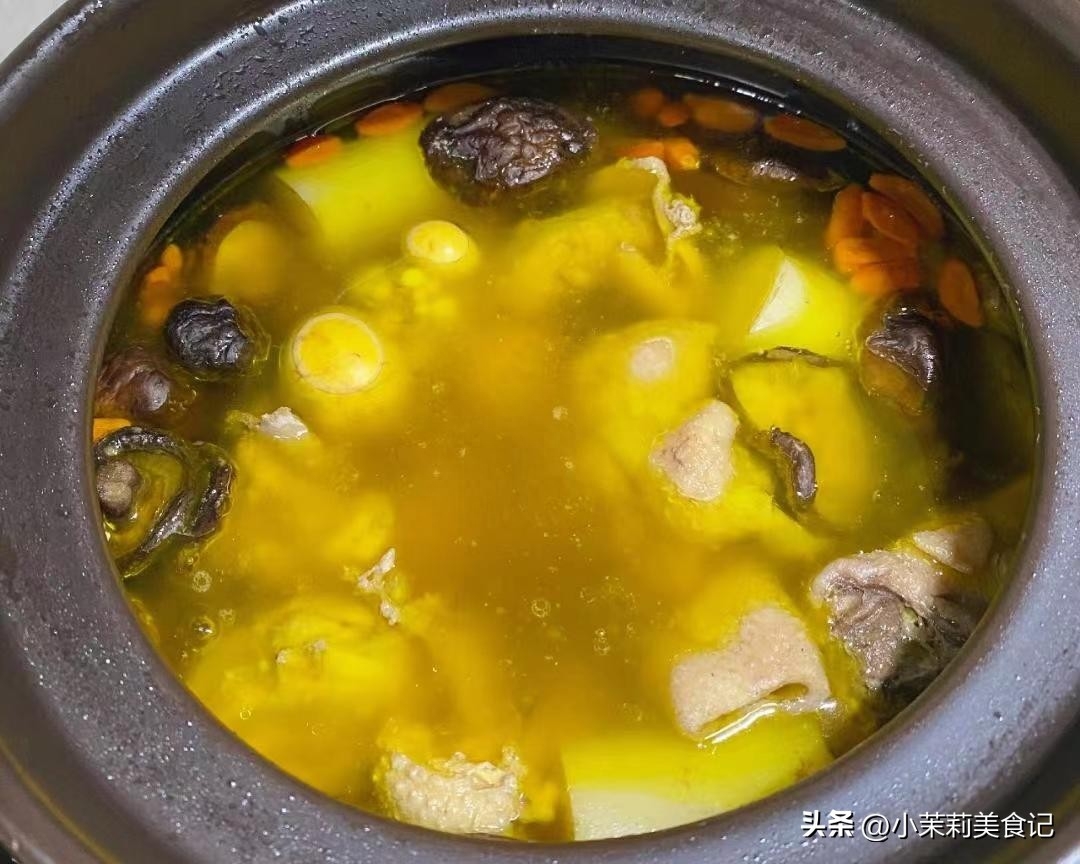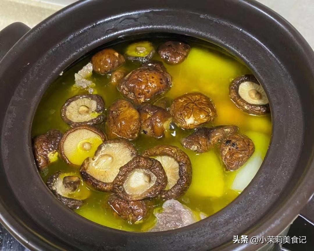3、接著將香菇放進去,與雞肉一起小火燉一個半小時左右,讓食材的鮮香與營養充分釋放。