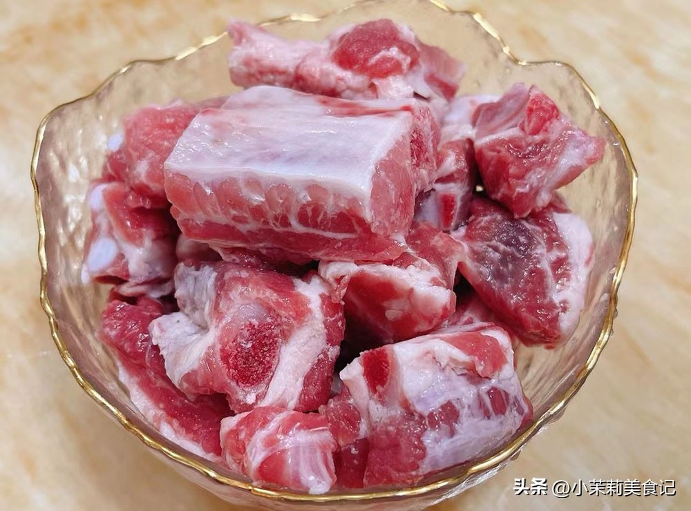 1、適量的豬小排剁小塊,在冷水中充分浸泡並洗凈,將水分擠出。