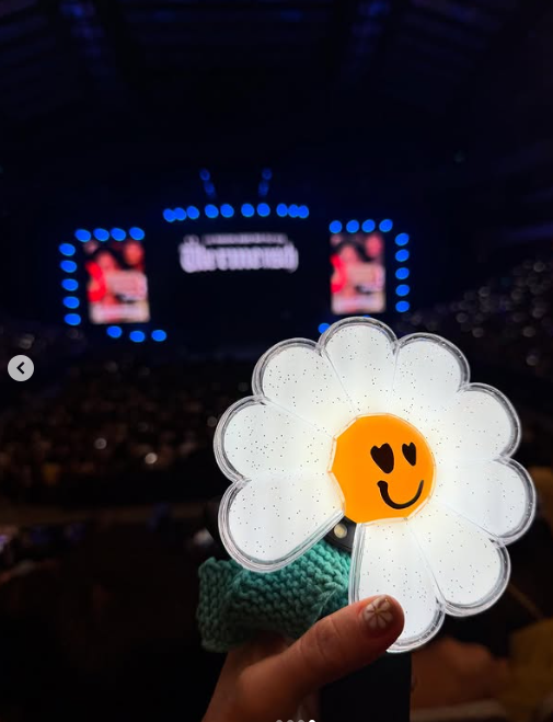 賈靜雯在社群平台分享觀看演唱會的心得,開心表示「GD太可愛了,瞬間圈粉」,並附上演唱會現場照片及應援手燈特寫。貼文中她還標註了GD的官方帳號,分享自己觀賞演出的喜悅。