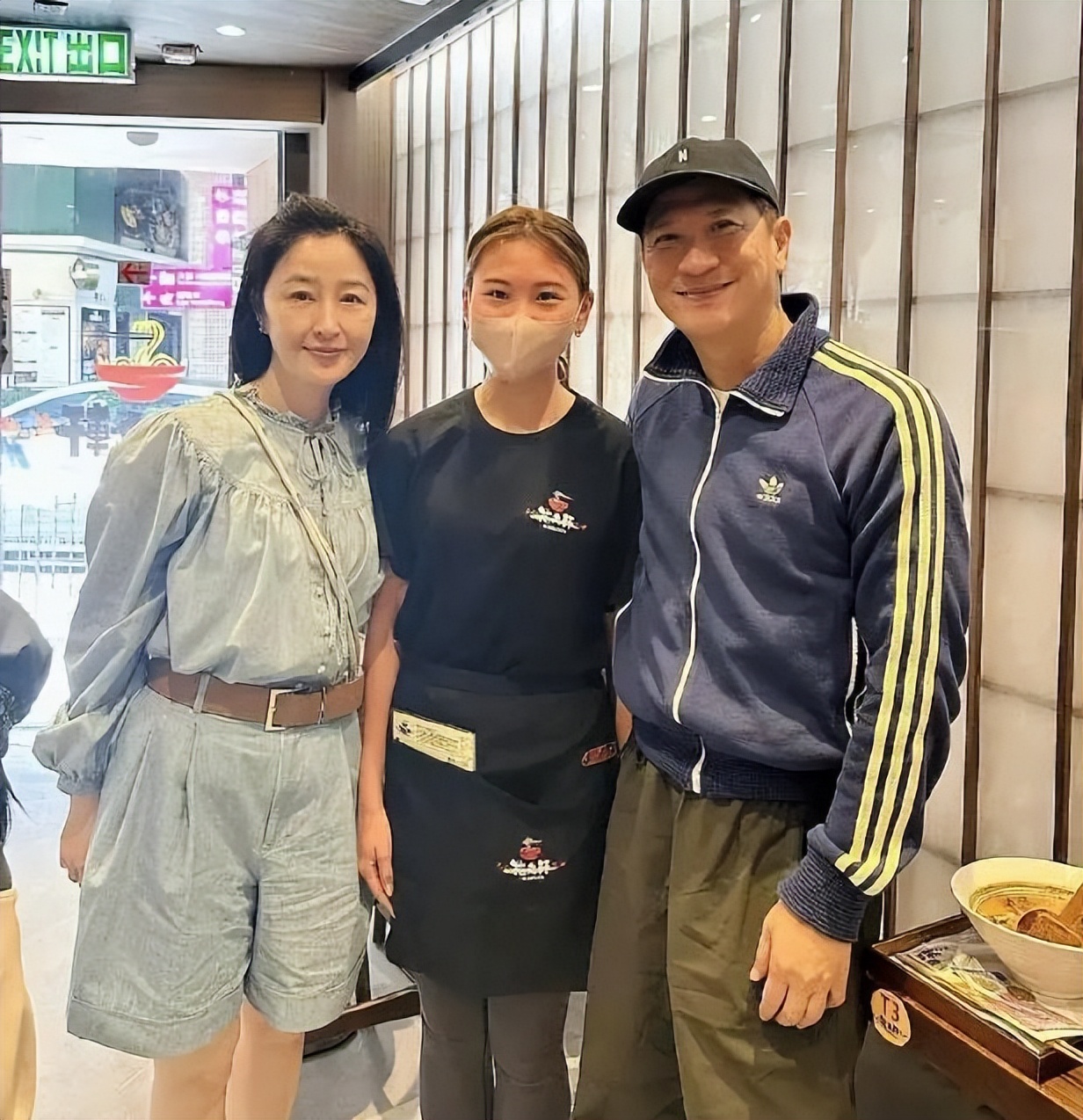 鏡頭之中的關詠荷和張家輝和粉絲一起燦笑,關詠荷站在中間合影,狀態真的太絕了。