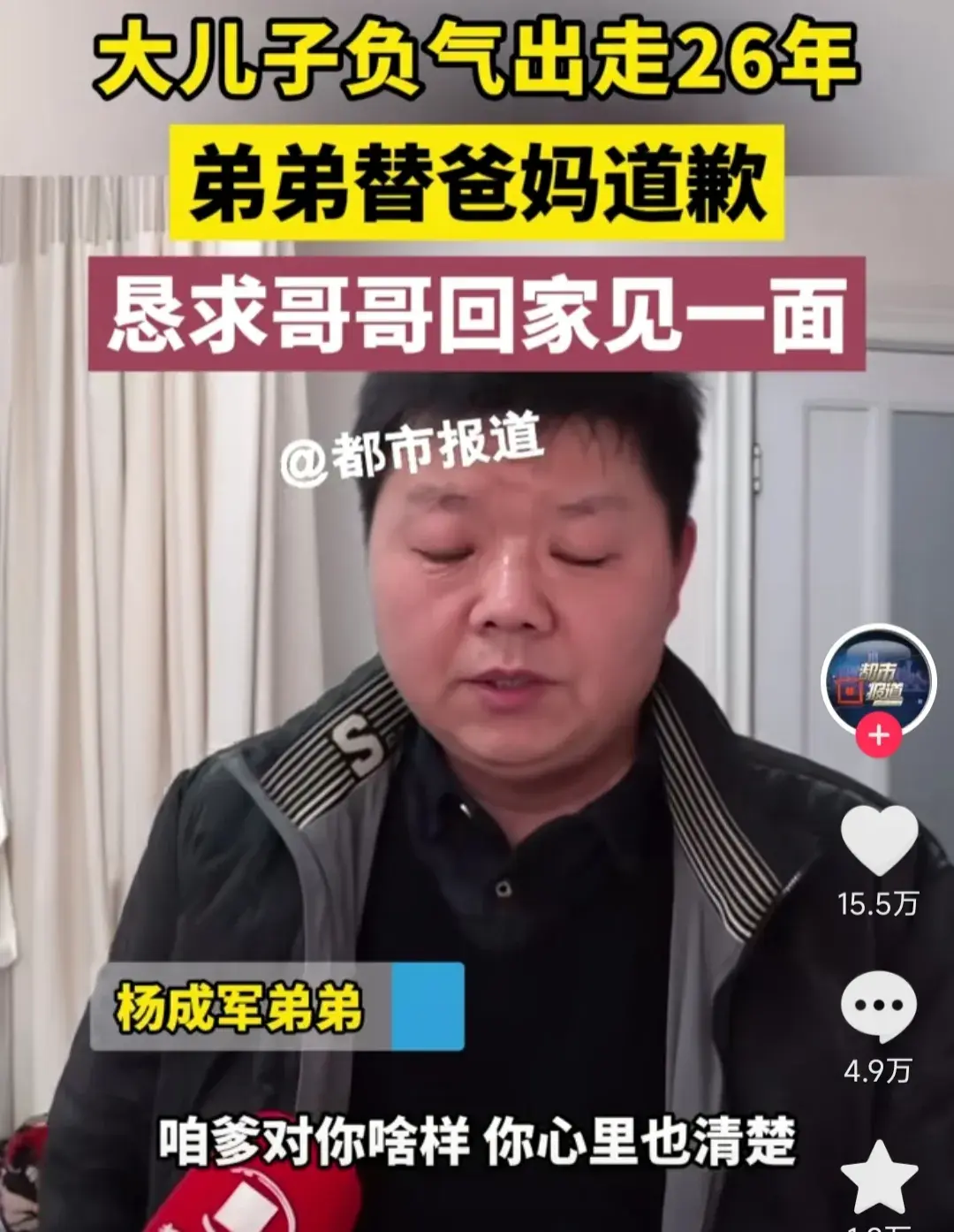 「我替咱爹咱媽對你說聲對不起!」