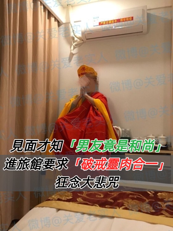 網戀見面才知「男友竟是和尚」!要求開房稱「破戒靈肉合一」她傻眼:辦事狂唸大悲咒...