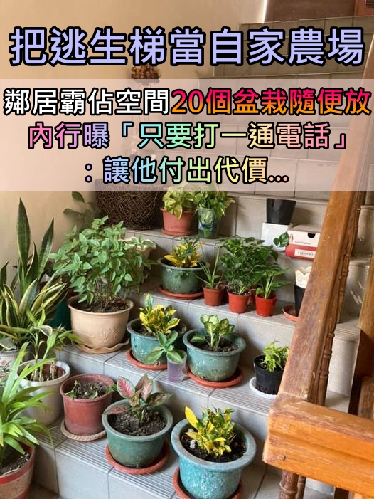20個盆栽隨便放!公寓逃生梯「變鄰居的開心農場」 他拍照怒轟「真的好自私」下場曝