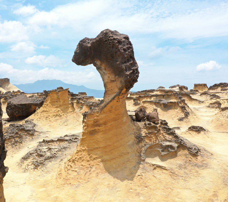 如今隨著象鼻岩斷鼻後,外界也擔憂下一個坍塌的恐會是野柳女王頭,它因長年風化影響,「脖子」在7年間減少了18公分,也有專家推測,在不受外力的影響下,女王頭預估只剩10到15年的時間就會「斷頭」。