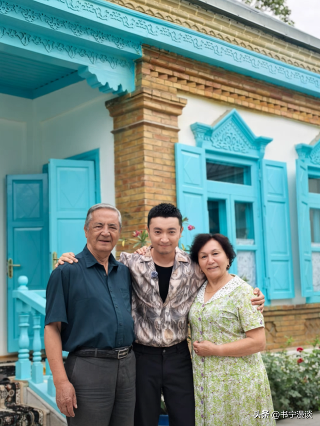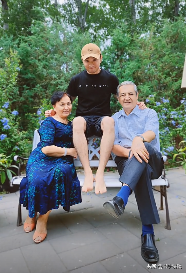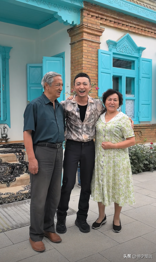 尼格買提和父母在老家院子合照,兩位老人的氣質都非常好,尤其是爸爸長相十分帥氣,而且打扮得體又優雅,舉手投足間充滿了藝術家的儒雅風範,看來尼格買提是繼承了爸爸的好基因。