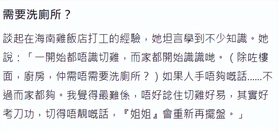 30歲女星在餐廳「打工謀生」,從早忙到晚還要「洗廁所」,坦言心態要轉變
