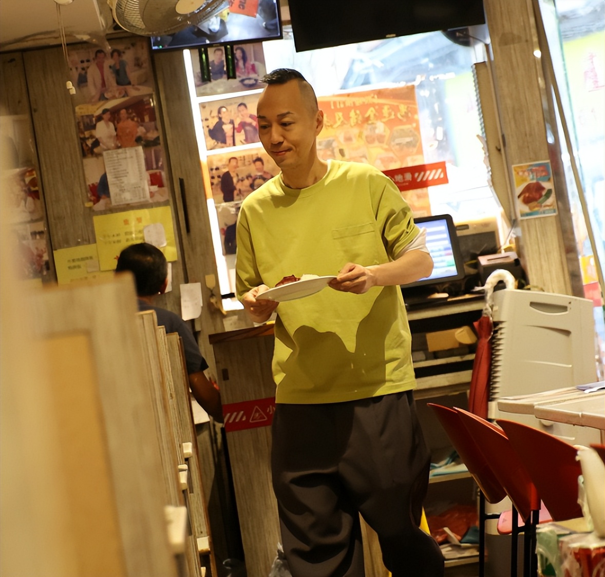 無獨有偶,52歲港星戴耀明今年11月被曝在一家餐廳打工,他和梁茵一樣,要下單、上菜、擦桌子、洗碗、洗廁所、倒垃圾等,戴耀明自曝一天上班十多個小時,月薪一萬多,十分辛苦但抱著學習的態度去工作。