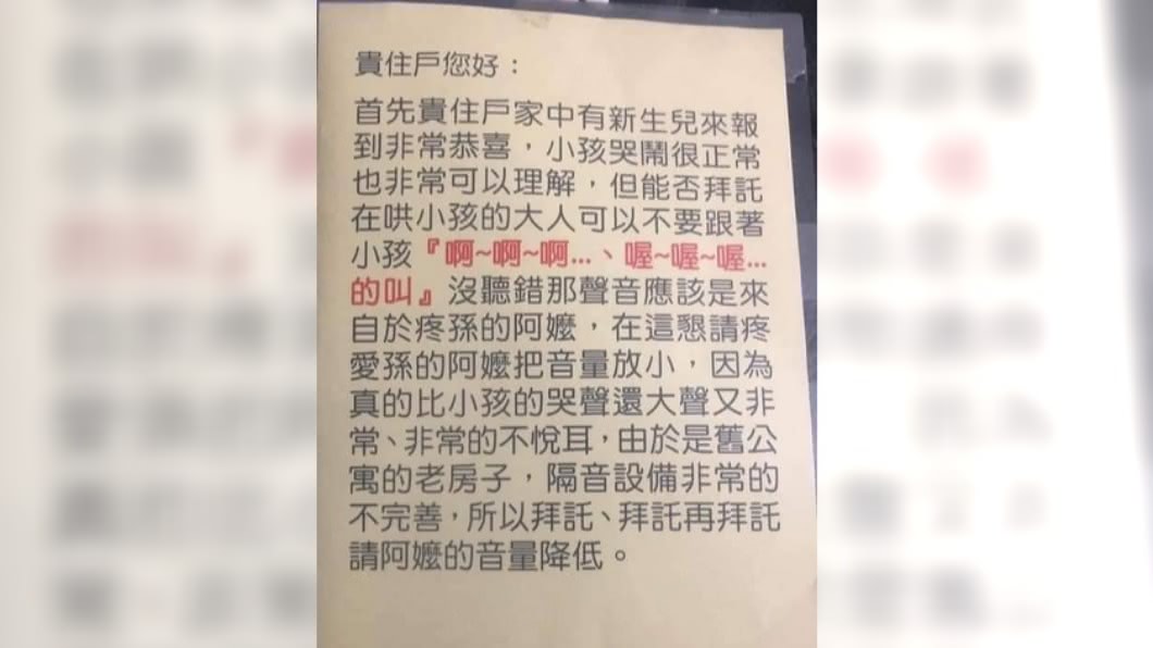 紙條結尾處,鄰居還很貼心地給阿嬤台階下,表示大家住的都是舊公寓,隔音設備非常不完善,一連說了三個拜託,請阿嬤的音量降低,雖然是抱怨文,但用字遣詞都相當幽默,原PO也笑說:「隔壁棟竟然在我家窗戶外面貼這個,我婆婆在這條街可能會瞬間而紅吧!」