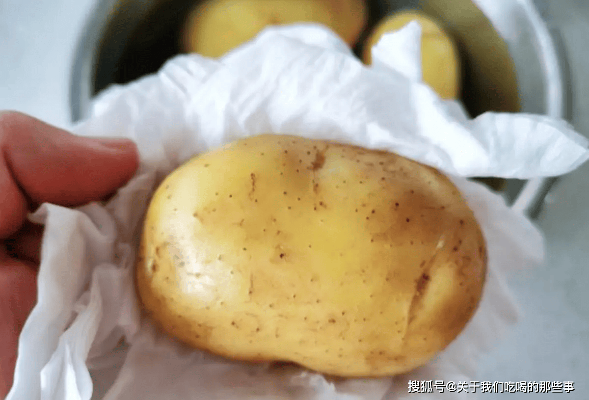 3、浸泡後撈出馬鈴薯,用布擦一下,再放到太陽下晾乾。