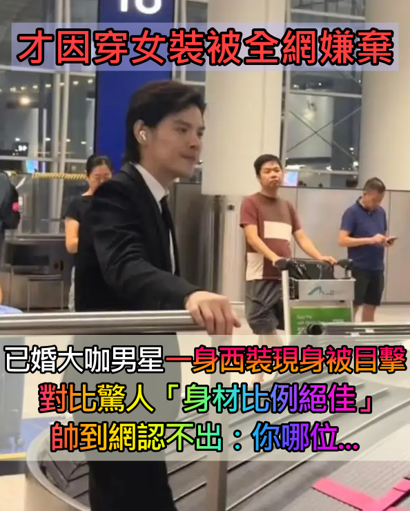 因穿女裝被全網嫌棄!已婚大咖男星「穿西裝現身被目擊」 身材比例絕佳「帥到眾人認不出」