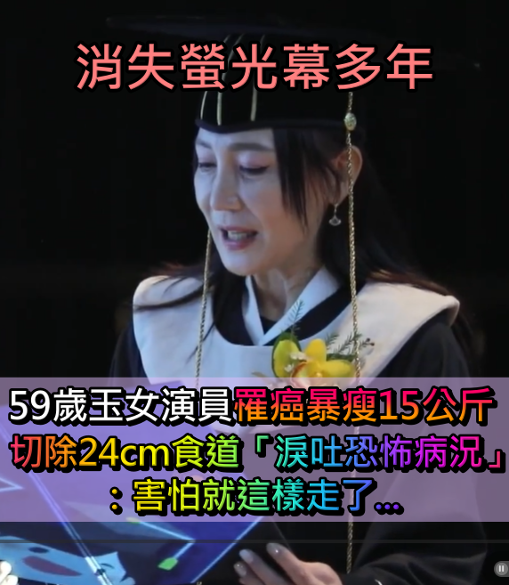 消失螢光幕!59歲玉女演員「罹癌暴瘦15公斤」 切除24cm食道「淚吐病況」:害怕就這樣走了