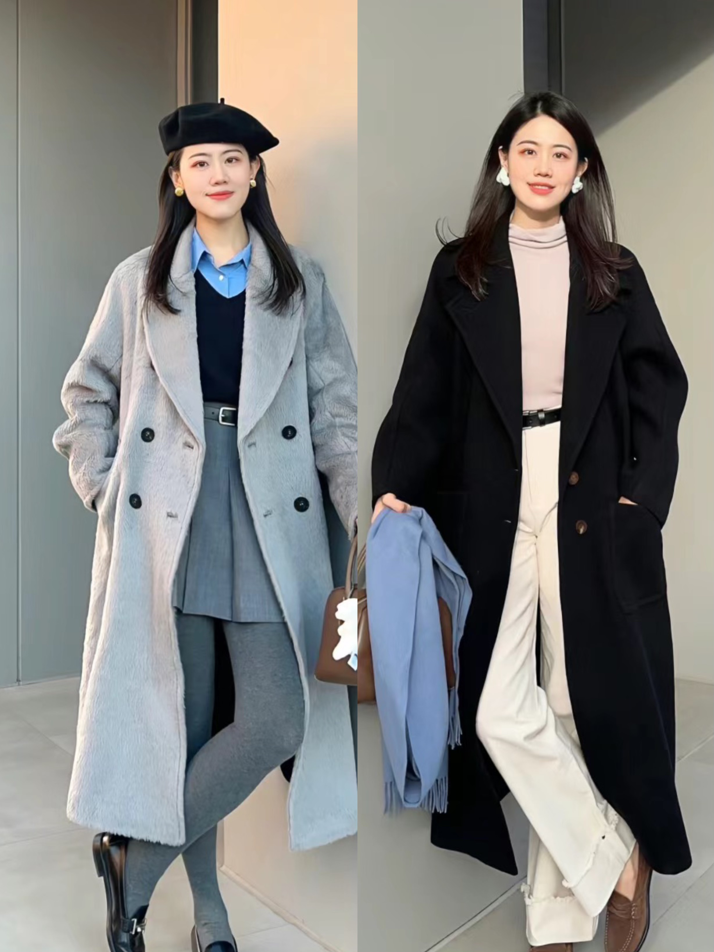 冬天裡的外套,最不可少的就是一件長款大衣了。長款的大衣,穿起來利落又挺拔,也具備了高級大氣之美。