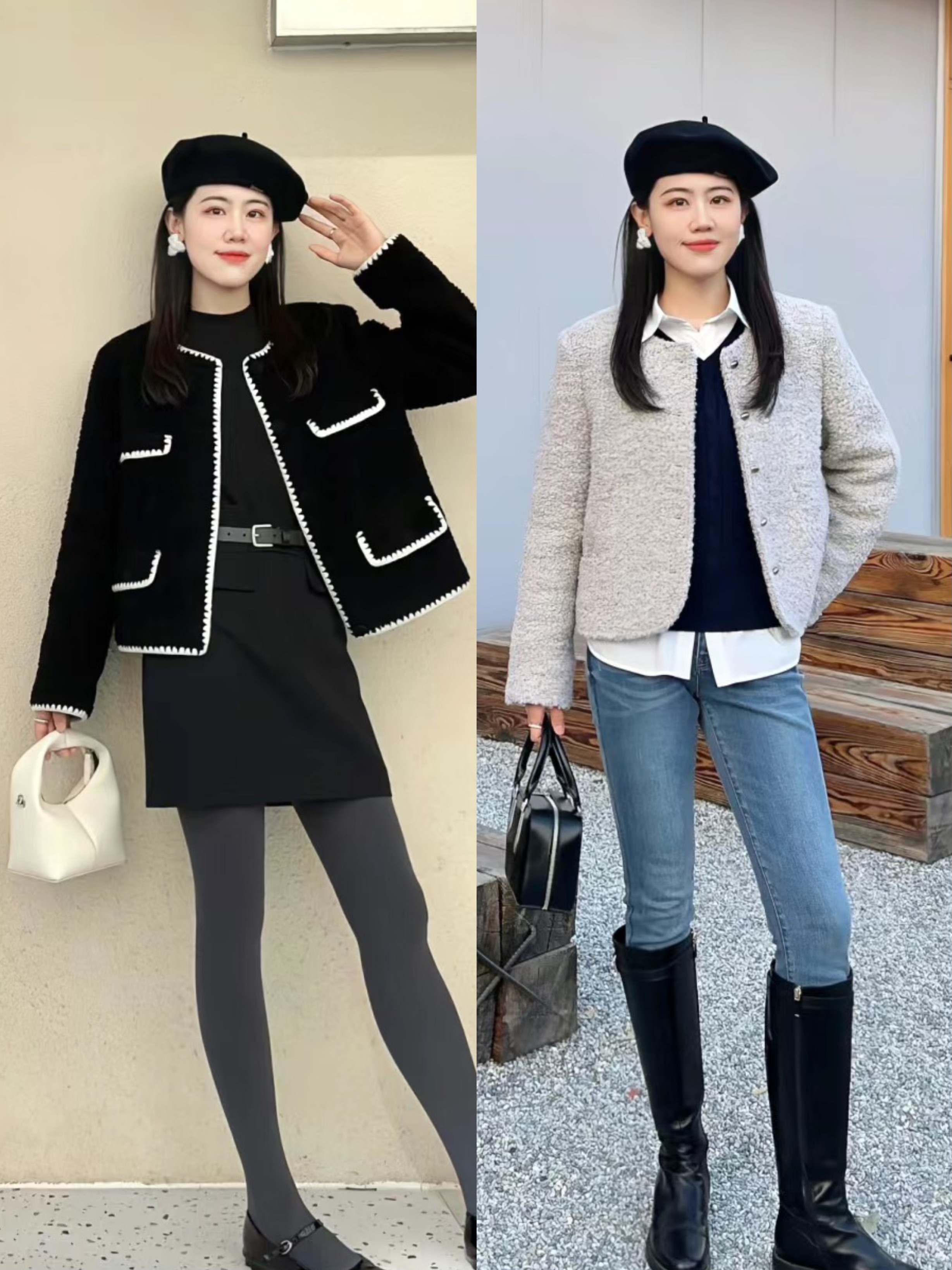 不管是學院風的牛角扣大衣,還是利落又具備包容性的繭型大衣,都可以更隨心的穿著。大衣配短裙的時候,可以搭配厚實的打底褲或者光腿神器,顯瘦又保暖。